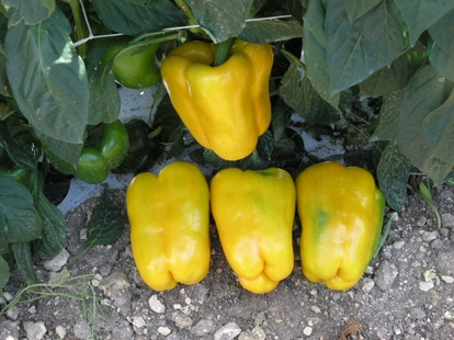 Variedad de pimiento lamuyo amarillo híbrido. Planta vigorosa con gran cobertura foliar y frutos uniformes en calibre y forma, con pared gruesa, con 3-4 báculos, 14-17 cm de longitud y 9-10 cm de diámetro. Color amarillo uniforme, manteniéndolo estable en el tiempo.